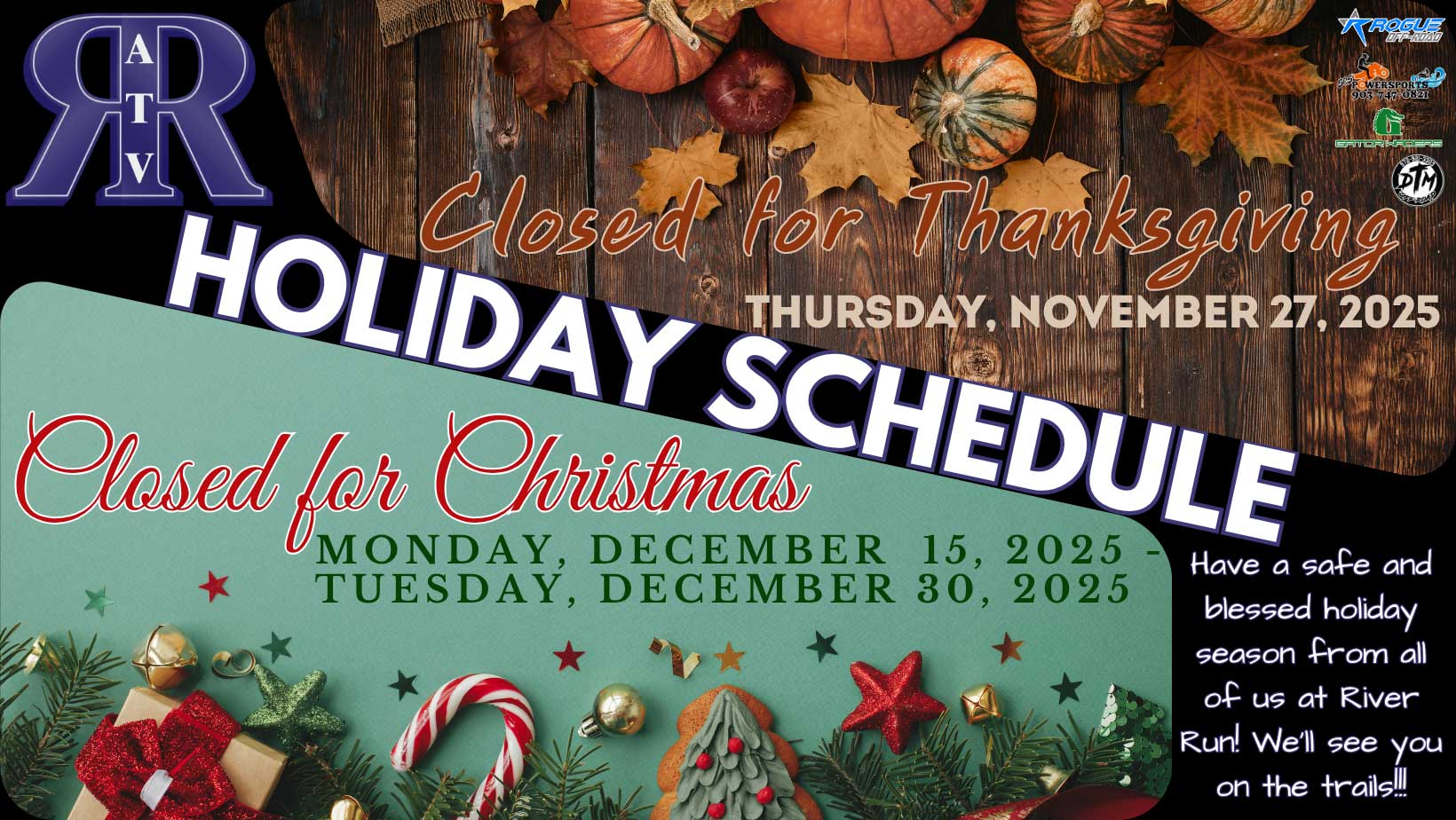 River Run ATV Park will be CLOSED for the following days in observation of the Thanksgiving and Christmas Holidays:
